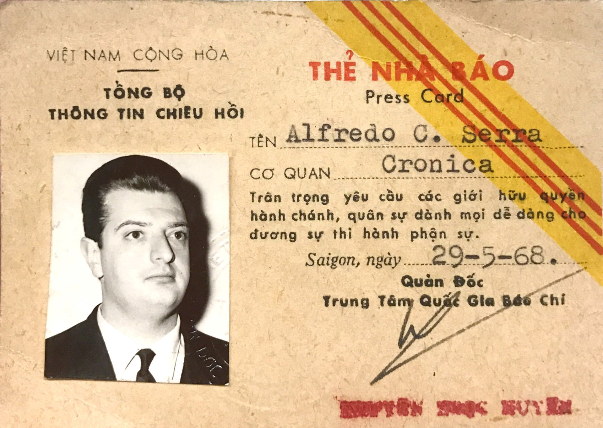THẺ NHÀ BÁO VIỆT NAM CỘNG HÒA
